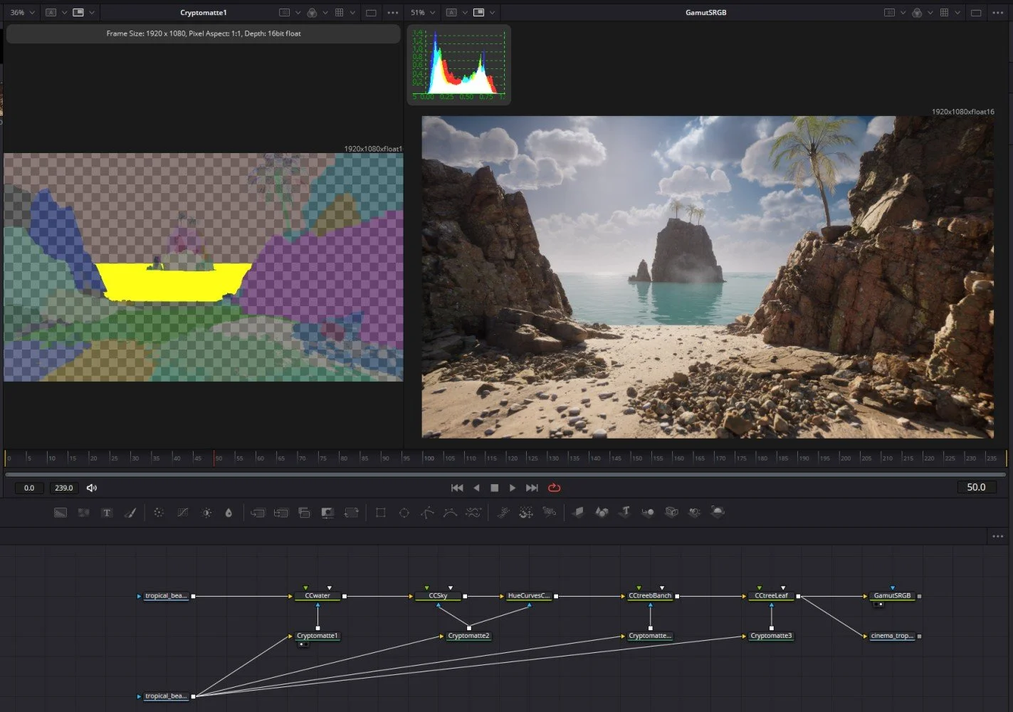 Color correcting the .exr sequence with embedded object ID's using Davinci Resolve Fusion